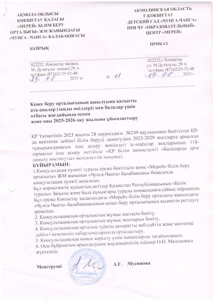 Мерей "білім беру орталығы" ЖМ жанындағы "Чунга-Чанга" балабақшасы"