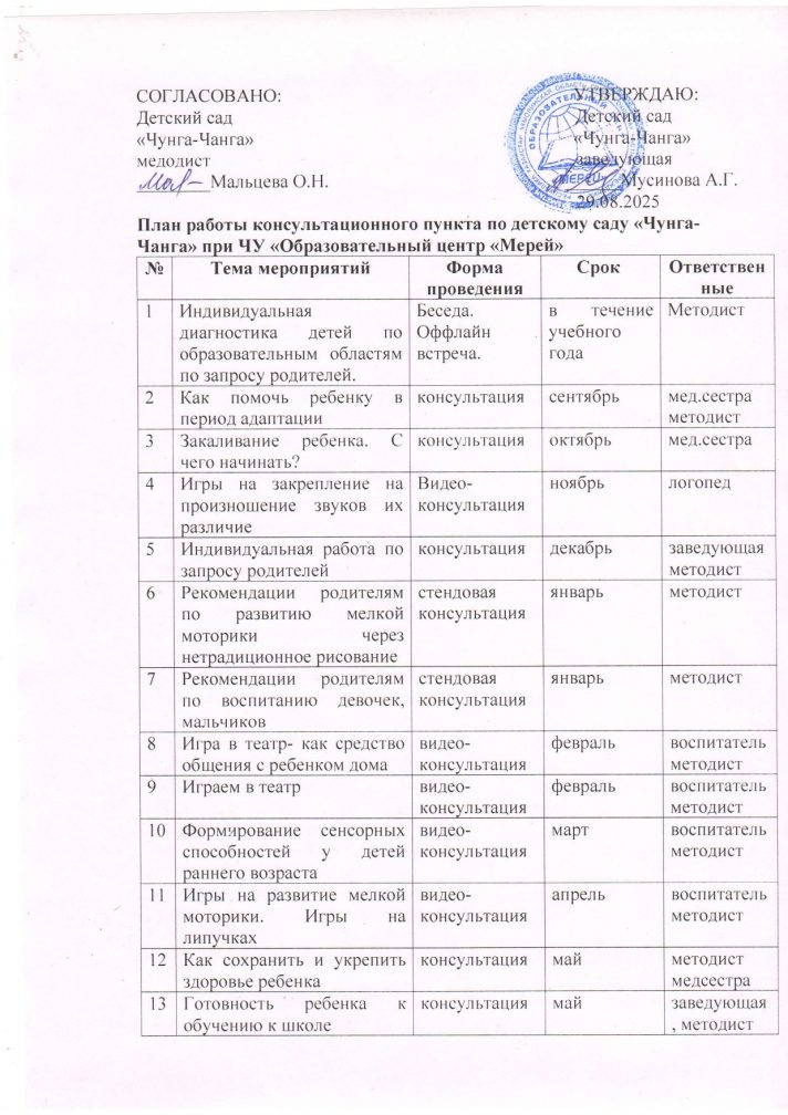 Кеңес беру орталығының ашылуына қатысты ата-аналар (заңды өкілдері) мен балалар үшін отбасы жағдайында өскен және оны 2025-2026 оқу жылына ұйымдастыру